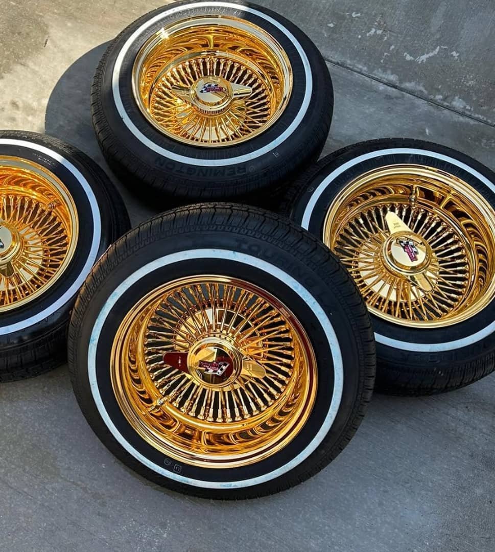 Be the first to review “All Gold Dayton Fresh Tires Have 5 Miles on Them Triple Stamped With Chrome Adapters”